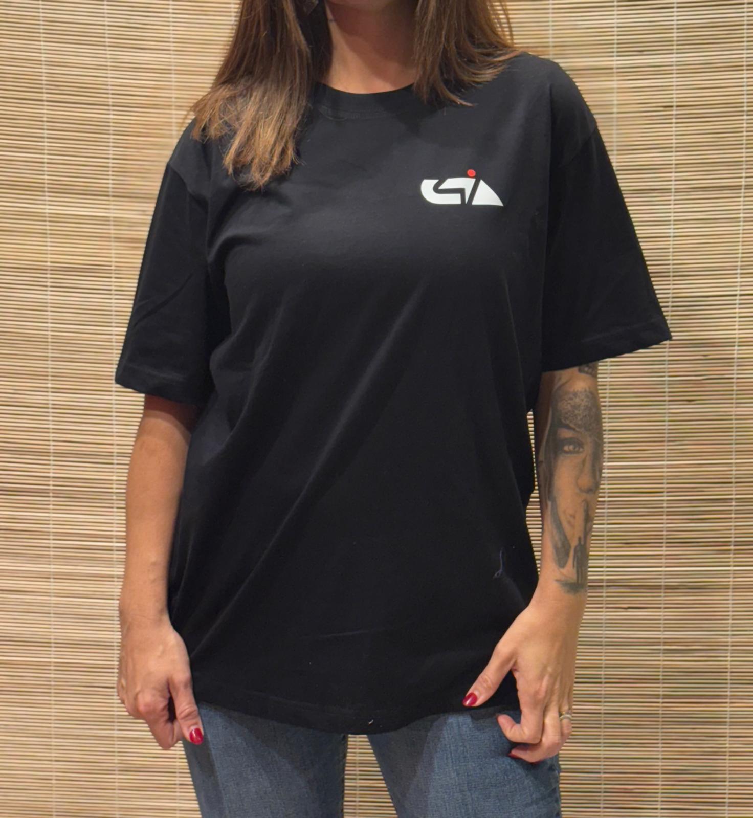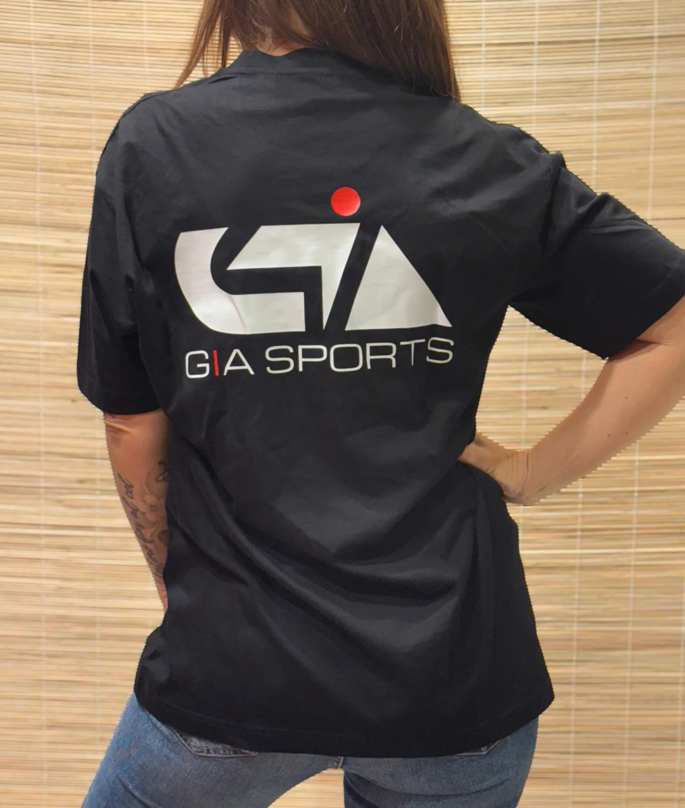 Camiseta negra GIA Sports Unisex de tejido suave y resistente, perfecta para entrenamientos o uso diario. Diseño limpio con logo deportivo y gran comodidad.