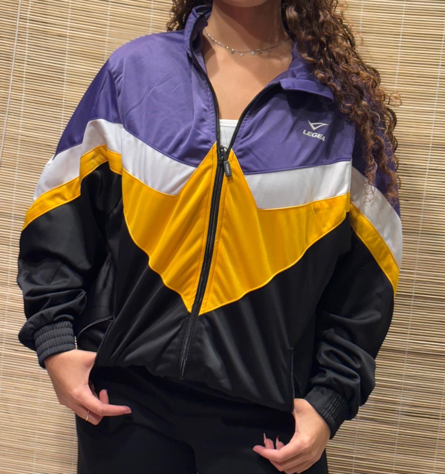 La chaqueta deportiva Legea Loose TRICOLOR combina estilo retro y rendimiento moderno. Confeccionada en tejido técnico ligero y transpirable, ofrece máxima comodidad tanto para el entrenamiento como para el uso diario. Su diseño presenta un distintivo patrón en forma de “V” en tonos verde militar y blanco sobre fondo negro, que aporta un toque dinámico y moderno.