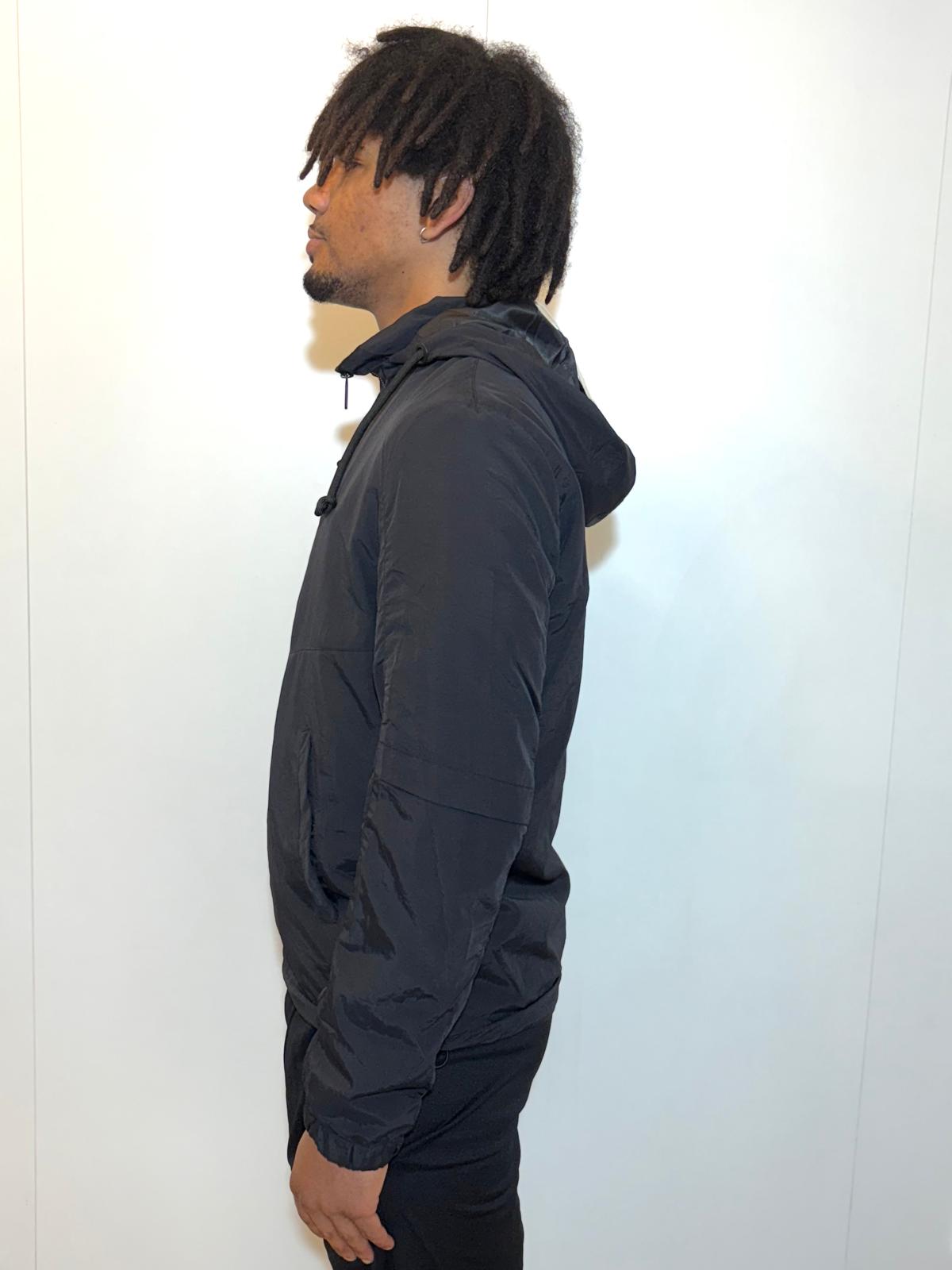 Su diseño ajustado y ligero incorpora capucha con cordones elásticos, cremallera frontal completa y bolsillos laterales funcionales con cierre oculto. Los puños elásticos y las costuras reforzadas garantizan un ajuste seguro y durabilidad frente a las condiciones meteorológicas.