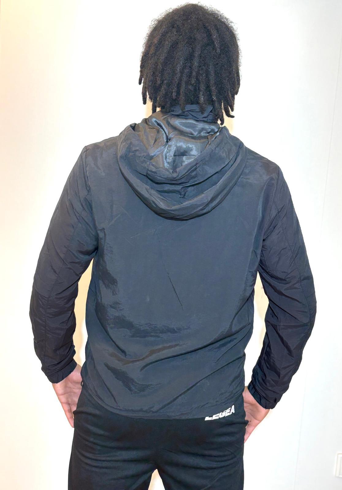 La chaqueta deportiva impermeable Black Wind negra está diseñada para ofrecer máxima protección y rendimiento en entrenamientos al aire libre o uso urbano. Fabricada con tejido técnico de alta densidad, esta prenda combina propiedades cortaviento e impermeables sin sacrificar la transpirabilidad ni la libertad de movimiento.