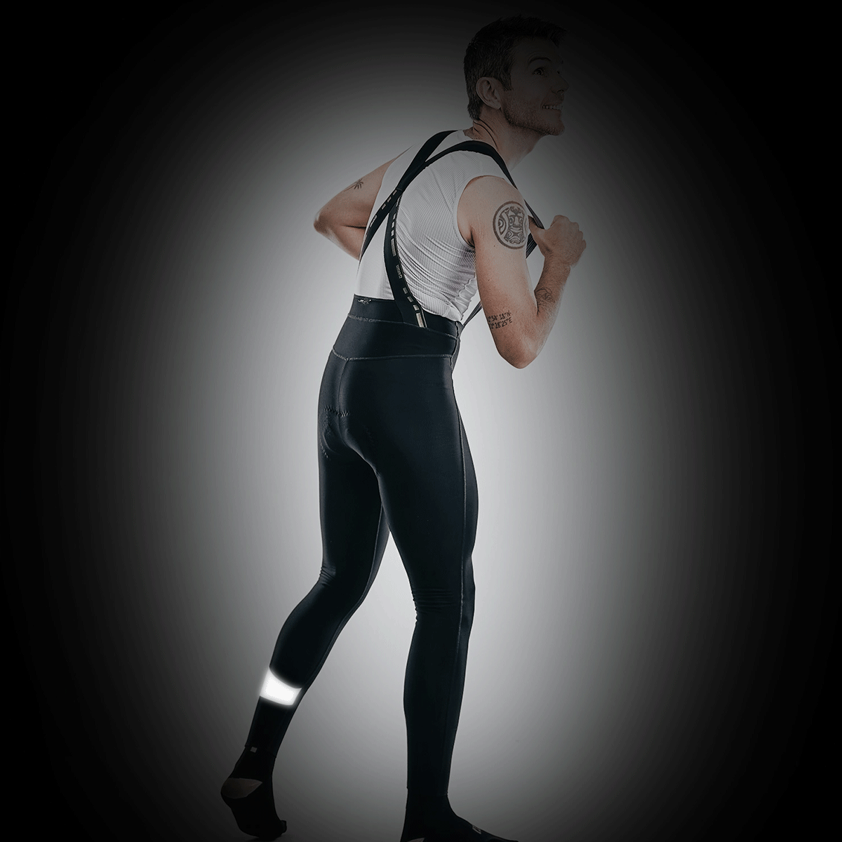 Al final de las piernas tiene una banda elástica con un grip de silicona hipoalergénica en su interior. Ésta mantiene la prenda bien sujeta a la pierna. En la zona posterior tiene un detalle reflectante que aumentará tu seguridad ya que reflejará la luz de los vehículos.