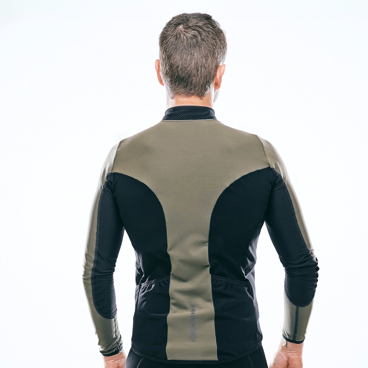 El tejido frontal y las mangas están confeccionados con tejido térmico SUPERROUBAIX mientras que la zona bajo las axilas, bajo manga y laterales de la espalda incorporan el tejido CYCLON, que favorecen la transpirabilidad.