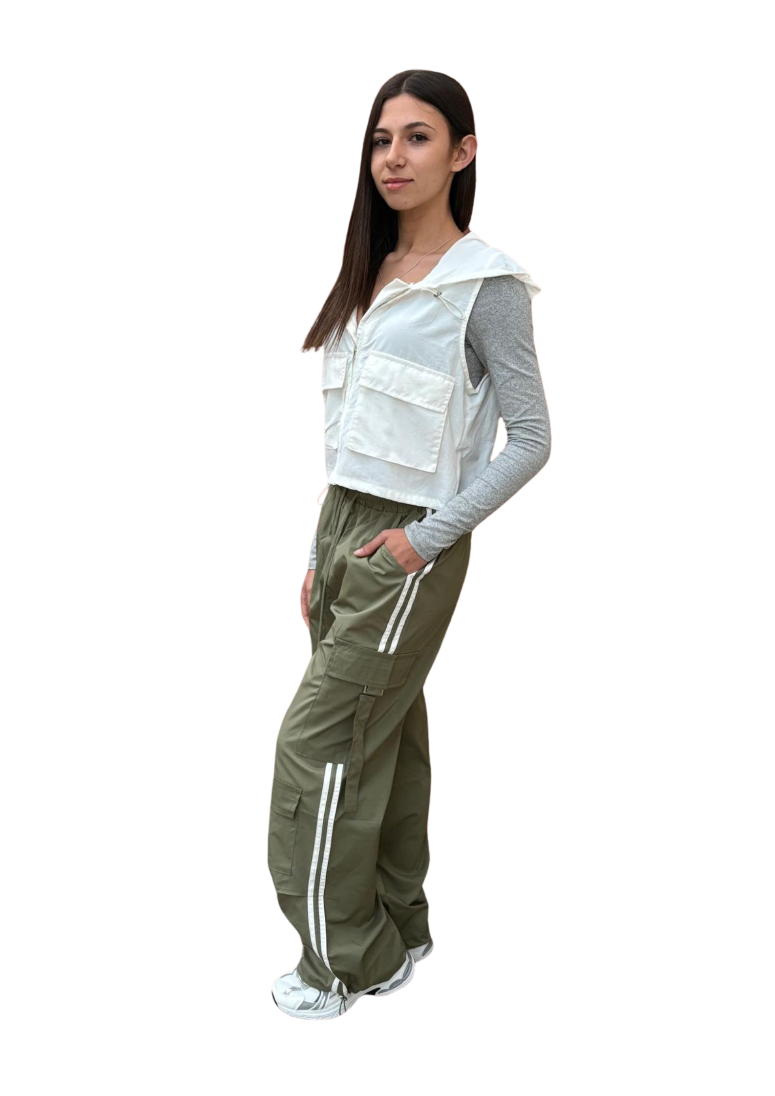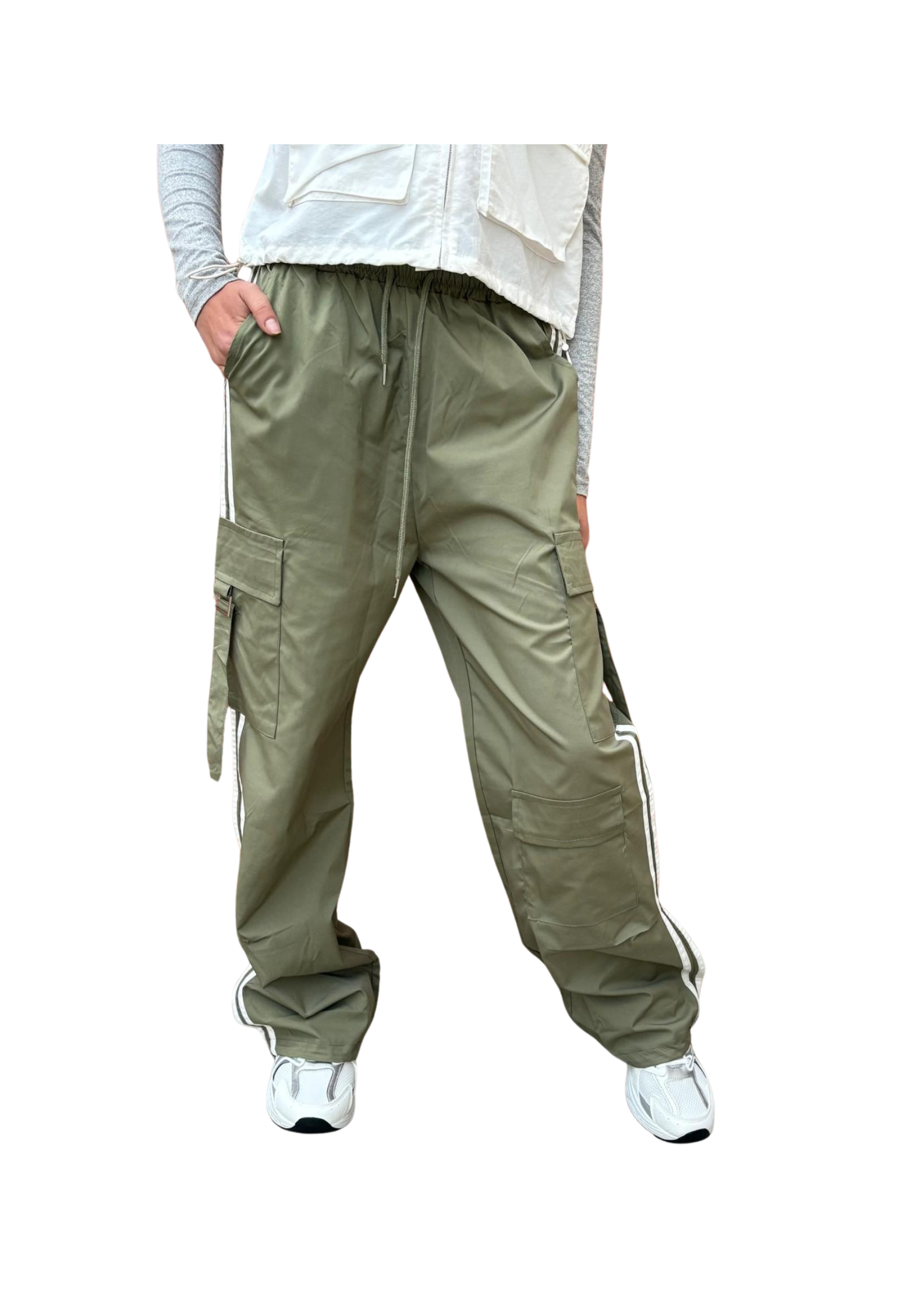 Los Pantalones Cargo Granada Verde son la prenda perfecta para un look urbano, cómodo y con mucho estilo. Su diseño ancho y relajado aporta un aire desenfadado, mientras que los bolsillos laterales y los cordones ajustables le dan el toque funcional típico del estilo cargo.